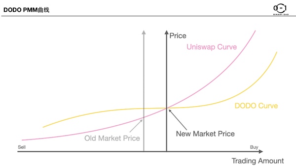 DODO 算是老牌的 DEX 了,其 PMM 算法也是原创,全称是 Proactive Market Maker,这个算法通过预言机引入了一个标的价格,这个标的价格也可以通过链上的供需机制来进行价格发现,可以将流动性聚集在标的价格附近,从而有效降低交易用户的滑点,同时也提高了 LP 的资金效率。