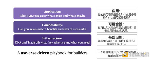 我们相信针对特定应用进行优化才是 L1 的未来。考虑到三难问题,没有哪条链能达到一个万能设计就符合所有应用场景的状态。在我们之前的跨链文章的基础上,我们提出了一个 “三个问题” 的问答手册,供区块链应用的开发者们考虑他们的技术选择。