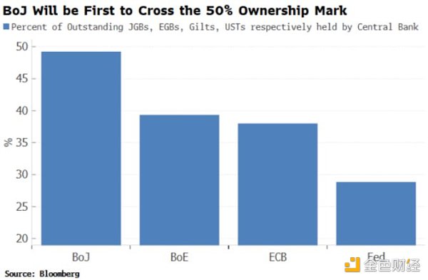 今天日本的财政状况也许就是未来的美国。日本央行(BoJ)拥有近50%的自有债券。日本政府似乎决心在日元持有者发现其实日元并不稀缺,且一文不值之前尽可能多地为其经济提供资金。