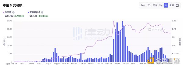 NFT 市场的总市值与交易额变化(来源:NFTGO)