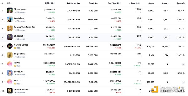 24小时内销售涨幅前十的NFT 数据来源:NFTGO