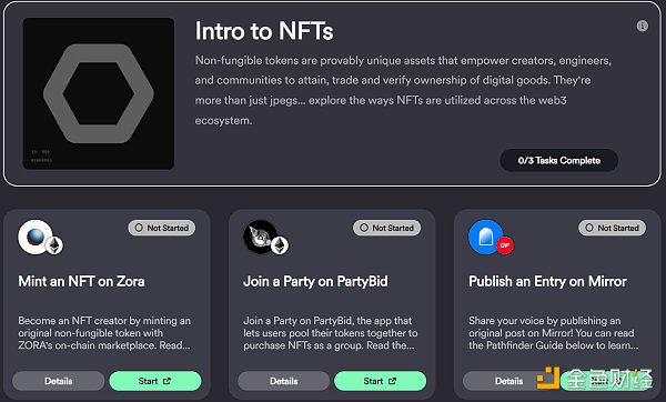 目前Project Galaxy平台上的奖励形式分为NFT和OAT(链上成就代币),比如Arbitrum奥德赛活动跨链周中,Arbitrum奖励的是一个NFT,跨链协议Hop Protocol奖励的是一个OAT,以此来代表用户在跨链周中使用跨链桥Hop的凭证。用户获得NFT和OAT奖励,除了用来构建个人的“Web3履历”外,还可用于某些活动的参与权益(如项目的空投、白名单等)。Project Galaxy为每个钱包用户创建了一个“Galaxy ID”,集成了用户在该平台所获得NFT、OAT和链上凭证信息。Project Galaxy在1月获得由Multicoin Capital 和Dragonfly Capital 共同领投1000万美元投资。
