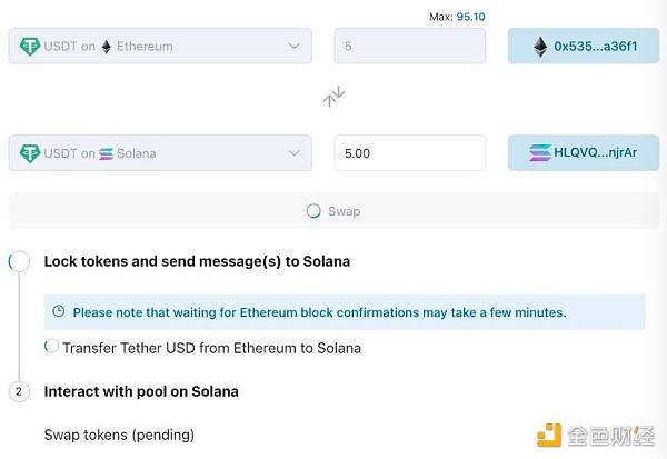 Swim Protocol在文档页面提供了详细的跨链指南,以ERC20 USDT跨链到SPL USDT为例,跨链操作需要以太坊和Solana上需要以太坊上的两笔交易和Solana上的多笔交易。
