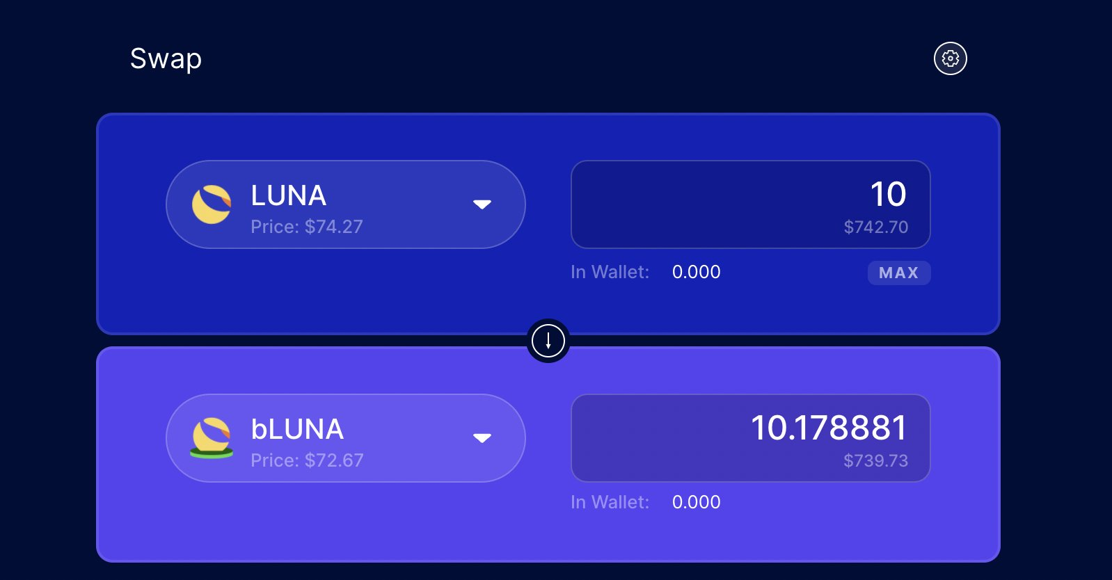 bLUNA 是 LidoFinance 的 LUNA 抵押衍生品。你可以从 Astroport 或 Terraswap 买到它,也可在 Anchor 上铸造它。因为价格更合适,我更偏好直接购买。