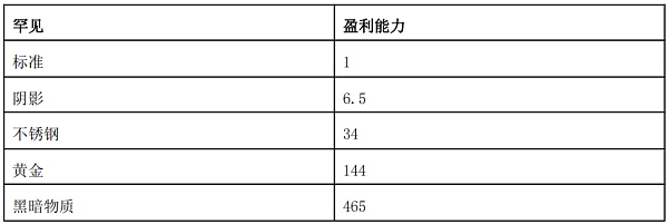 这些数字并不代表火星标记的数量,而是一个相对的收入能力。例如,1张不锈钢卡将获得与34 张标准卡相同的金额,但1张不锈钢卡将不会获得34张Martia令牌。