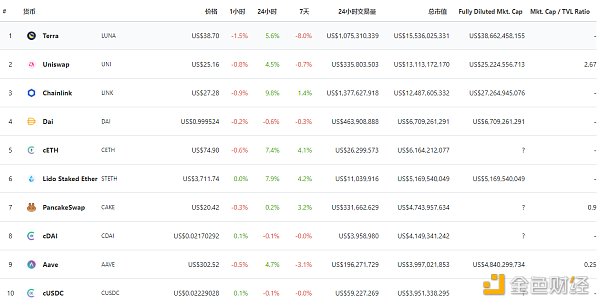 DeFi项目锁定资产前十排名及锁仓量,数据来源:Debank