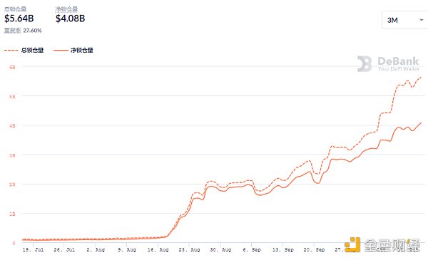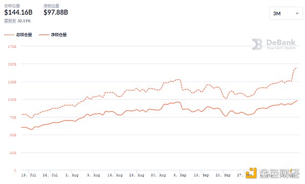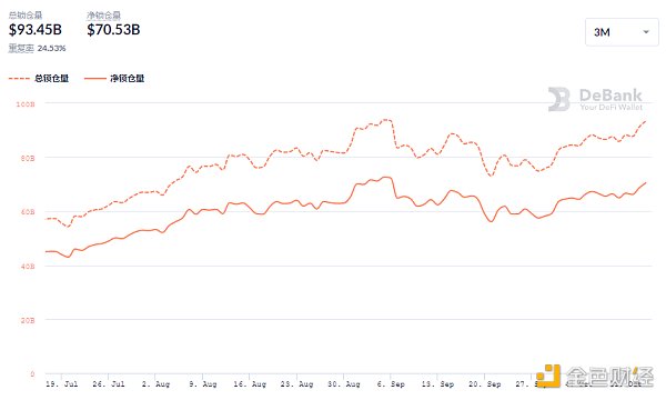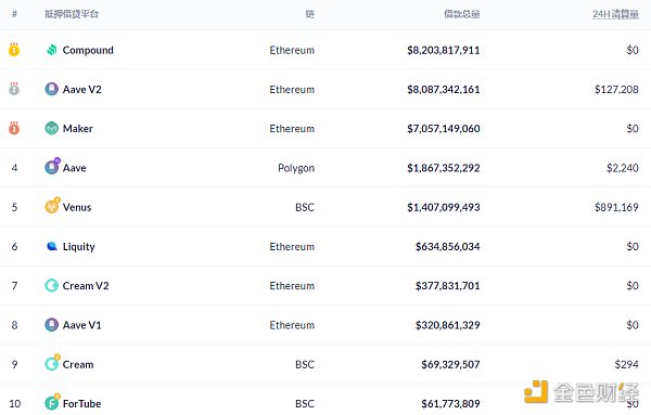 DeFi借贷平台借款总量数据来源:Debank