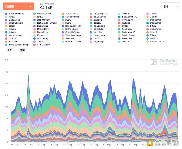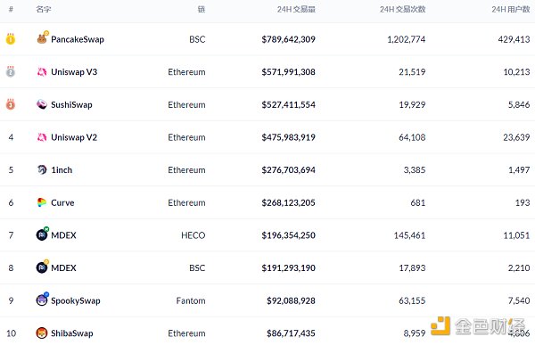 过去24小时去中心化交易所的交易量数据来源:Debank