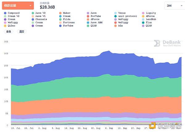 3.DeFi借贷平台借款总量:283.6亿美元
