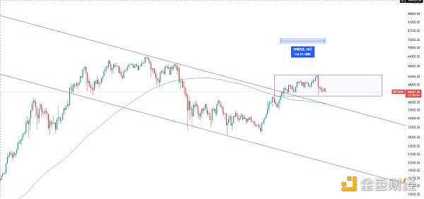 我们知道,120日均线在BTC牛熊周期转换中扮演着关键支撑与压制作用,目前BTC已突破前顶下降通道,跌破后的首次大反弹便直接站上120日均线,到今天已经38天时间位于上方箱体震荡,这与之前熊市进程跌破再回抽120日均线都未能站稳的情况完全不同,所以目前就说这波反弹只是熊市进程中的一个超跌反弹显然不合理,回看13年牛市中期大调整,BTC跌破120日均线低位盘整后重新站上,后面一直到13年牛市终极大顶并未再破,站上也不是立即大幅度拉升,又经过2个月的箱体震荡,和目前情况相似,洗盘充分后展开新一轮主升浪,所以对于目前走势,关键支撑依旧在120日均线,不破中长线就耐心持有,后面有望反转。