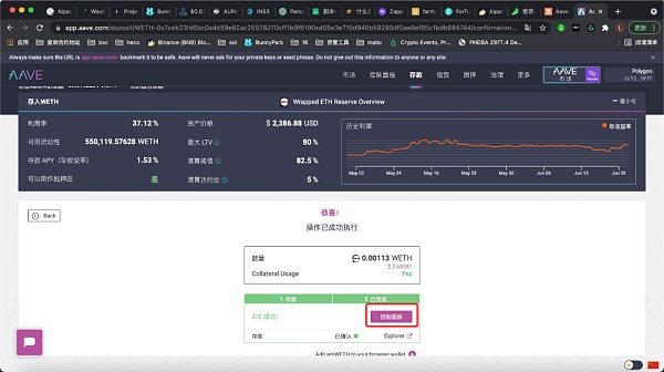 本文将示范如何在AAVE上抵押WETH借贷USDC的操作。