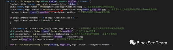 我们再来看下奖励分发函数?distributeSupplierComp: