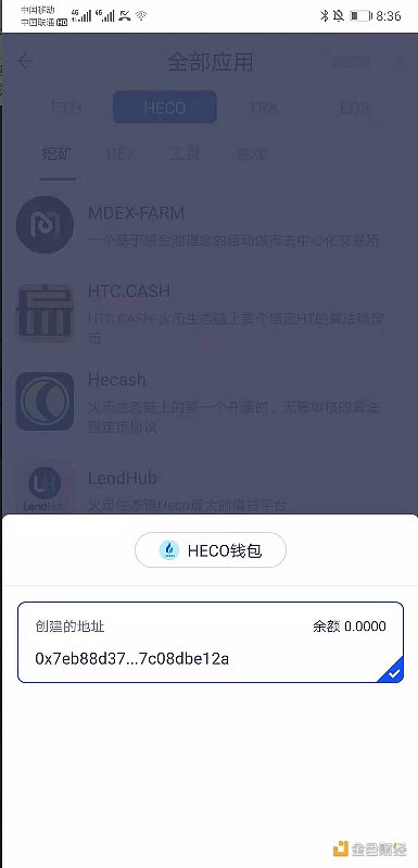 2、进入“Heco DeFi"后,点击右上角,连接Heco链地址。无Heco地址用户,火币钱包会提示创建钱包,创建后请妥善保管私钥。