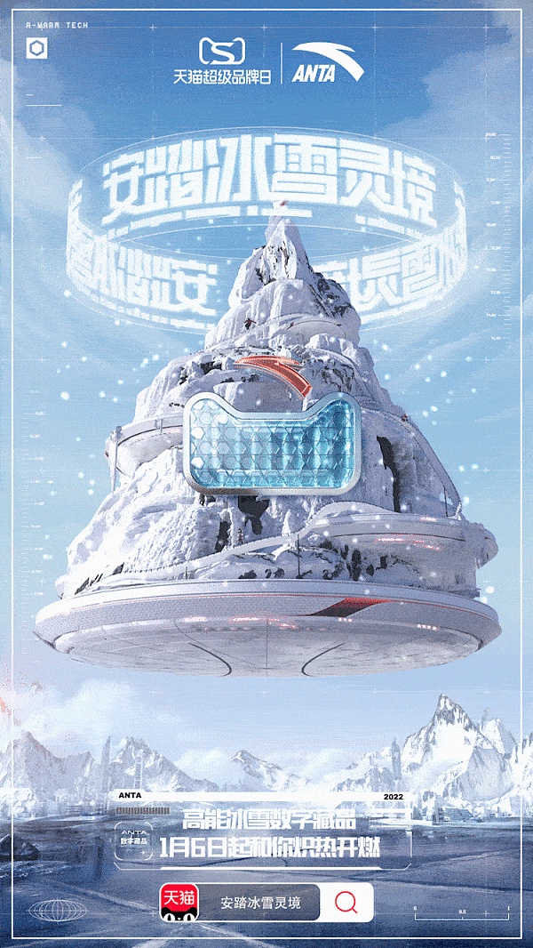 所以,安踏同天猫超品日打造了“安踏冰雪灵境”,并跨越时间、空间的限制为即将到来的北京冬奥会升温,让所有人都在线上聚集在一起,共享盛会。
