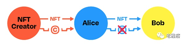 但是这个解决方案意味着 Bob 获得的东西比原始 NFT 创建者授予的全部权利要少。他将不得不调查他购买的 NFT 的整个交易链条,确保像 Alice 这样的前所有者还没有放弃部分版权。这与一切都应尽可能在公共和链上完成的加密精神背道而驰。