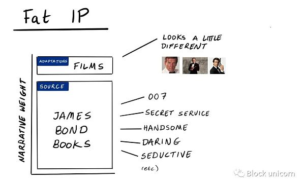 所有这些因素都促成了 NFT 的截然不同的 IP 结构,其中叙事分量位于原始创作之上,事后添加除物理特征外的所有内容。这是瘦IP。?