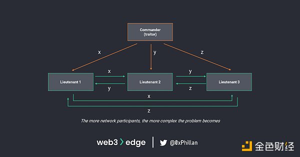 在学术界,这个问题被称为拜占庭将军问题。这个问题描述了这样一种情况:一个系统的行动者必须在战略上达成一致,以避免灾难性的失败,但系统中的一些行动者是不可靠的。