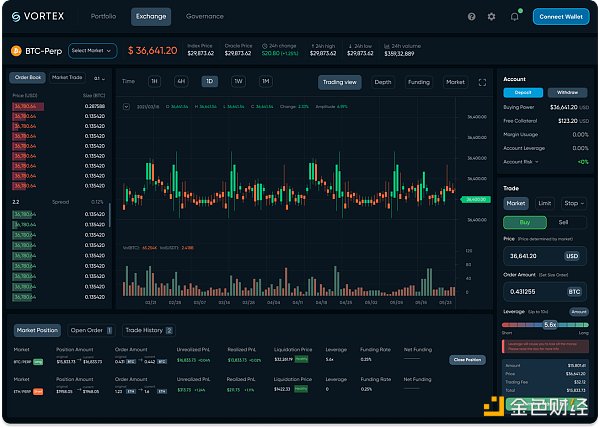 用户可以发布任何 IBC 资产作为抵押品,并以高达 10 倍的杠杆交易永续合约。截至撰稿时,Vortex 在测试网上提供 BTC、ETH、SOL、ATOM 和 OSMO 交易。