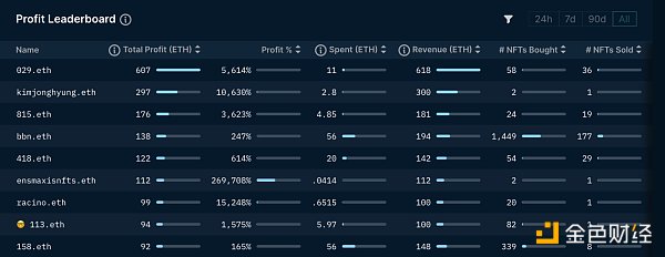 来源:Nansen,注:已实现利润(Total Profit)=收入 - 花费支出,收入为在扣除市场费用之前卖家获得的金额