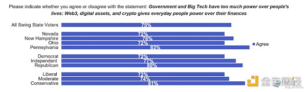 3. 选民认为 Web3 既是对不公平经济体系的回应,也是对科技巨头垄断的积极替代。