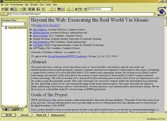 MOSAIC(马赛克):1993 年,第一个被广泛下载的互联网浏览器 Mosaic 由伊利诺伊大学的 NCSA 发布。它获得戈尔法案资助,由马克·安德森(Marc Andreessen)和埃里克·比纳(Eric Bina)设计,是第一个让非技术人员也能轻松使用互联网的浏览器。