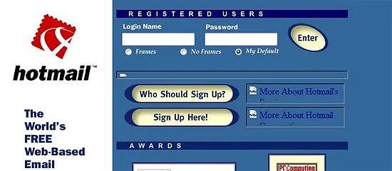 HOTMAIL: 1996 年,第一个网络邮件服务 Hotmail 正式推出。