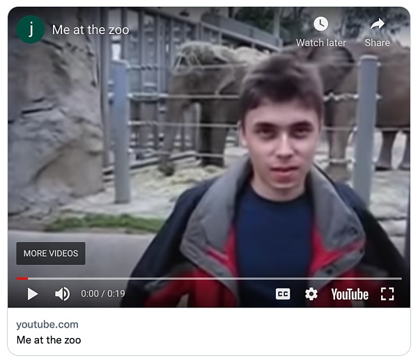 YOUTUBE: YouTube(油管)于 2005 年推出,将免费的在线视频托管和分享带给大众。这是第一个油管视频:https://youtu.be/jNQXAC9IVRw