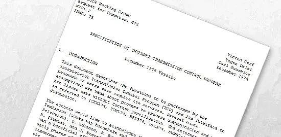 TCP/IP 的起源: 1974 年,有人提议将类似 Arpa 的网络连接起来,这个网络将没有中央控制,并将围绕传输控制协议(Transmission Control Protocol)工作。这最终成为 TCP/IP。