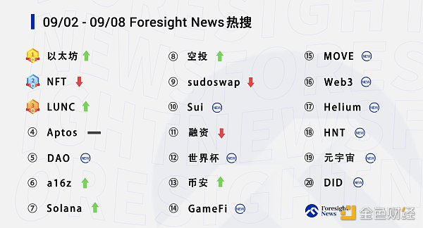 注:「每周热搜」统计自 Foresight News 上周五至本周四(9 月 2 日至 9 月 8 日)的用户搜索结果,同时对相同概念的大小写进行了合并处理。