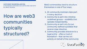 社区的组织结构影响着链下活动的去中心化程度,运营效率与基于豪威测试的非证券属性;所以应从三个角度考虑: