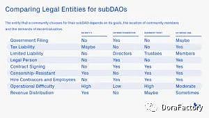 不必为所有SubDAO使用相同的法律实体,可能基金会适合一个subDAO,信托适合一个SubDAO,非法人非营利协会 (UNA)适合另一个。