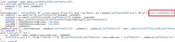 查看此 JS 文件,又发现了一个钓鱼站点 https://polarbears.in。