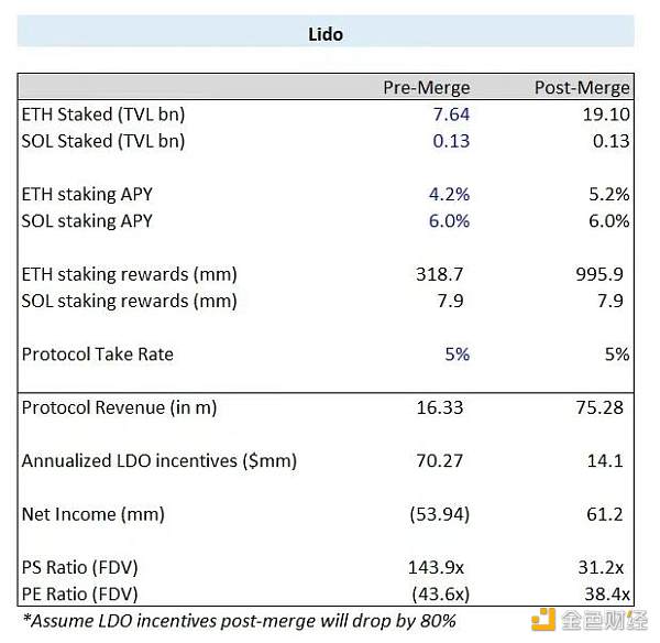 这个论点很简单。LSD 协议的收入直接受到ETH价格以及其他多个合并相关的影响。此外,在合并后不久,他们最大的支出,即补贴其持有衍生代币和原生 ETH 之间的流动性池的成本下降,实际上为零。在较高的水平上,我预计 4-7 倍的合并驱动 ETH 协议收入的增长(假设 ETH 价格仅小幅增长)和最大支出的 60-80% 的减少。这是一种独特而强大的根本性影响。