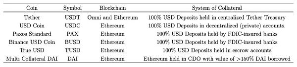 下面是一个有趣的表格,来自“什么使稳定币保持稳定?”的概述: