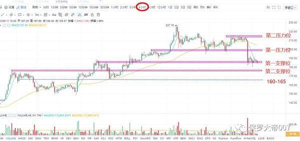 第一压力位200美元,第二压力位215美元,第一支撑位185美元,第二支撑位175美元。