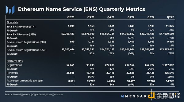 ENS 季度绩效可以根据 ENS域名使用情况和应计收入来衡量。