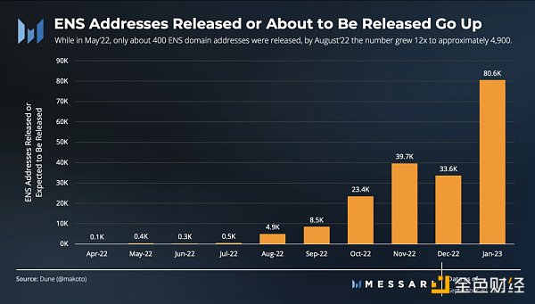 这种增长的一个潜在解释是在未来几个月内释放或预计释放的 ENS 名称数量大幅增加。