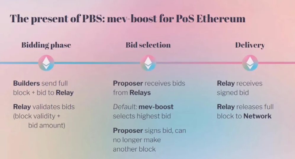 这减少了区块提议者审查的集中权力,因为构建区块者不是选择哪些交易包含区块中的同一个人。正如 Vitalik 在Endgame中所描述的,PBS 的重点是最大化验证者的去中心化。