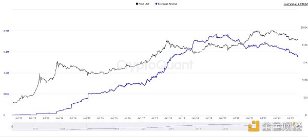 近 10% 的比特币供应目前依赖于交易所(约 226 万枚代币) 在高峰时期,这个数字接近 300 万枚比特币。在过去的一年中,大约有 100 万人或多或少地流向了主要经纪人。