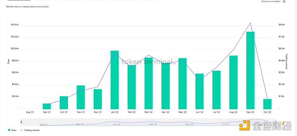 GMX(可比 dydx)也有类似的趋势。上个月,该交易所的交易量约为 86 亿,这是一个新的 ATH。本月的费用超过 1300 万美元。可以肯定地说,DeFi 的一部分仍然是健康和强大的。