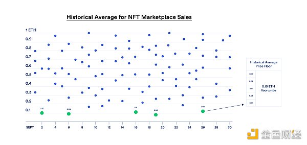 历史平均值基于一段时间内最低的成交价来估算NFT的平均地板价。
