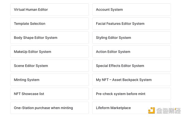 与同类 DID 或 3D 虚拟人、NFT 项目不同的是,Lifeform 强调的是「集成」,既有 web 2 和 web 3 的交互,也可实现 web 3 之间的交互,身具去中心化身份的同时,也注重可视化的体验,视觉上,用户通过强大的虚拟人编辑器 diy 的角色更加注重细节,且这种 UGC 模式可能会使其未来的生态更加繁荣多样。