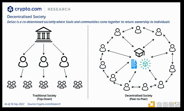 灵魂绑定代币(SBTs)的使用越来越多,这可能是另一个潜在的市场驱动。SBTs 是与个人或实体挂钩的 NFTs,不可转让,不可交易。它们旨在通过包含持有人的承诺、证书和附属关系来代表持有人的社会身份。它类似于简历或 CV 的概念。采用 SBTs 可以引导我们进入一个去中心化的社会(DeSoc)或一个共同决定的社会性,其中灵魂和社区以自下而上的方式召开。DeSoc 以不可转让的 SBT 为基础,旨在代表 "灵魂 "的承诺、证书和附属关系,可以对实体经济的信任网络进行编码,以建立出处和声誉。
