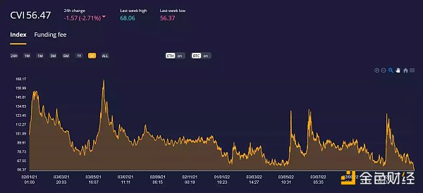 当前加密市场的 CVI 值是 56,处于近两年的最低水平。