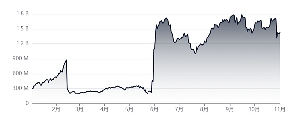 CREAM Finance TVL(2021 年 1 月 - 2021 年 11 月)