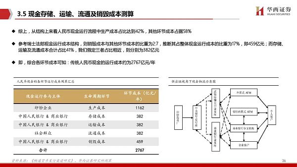 针对市场关心的数字货币能带来多大增量的问题,目前有各种说法,但都很难明确给出一种定量的数据和方法,报告给出了一种可量化、有依据的测算框架和方式:数字货币市场空间≈替代纸币所节省的成本。