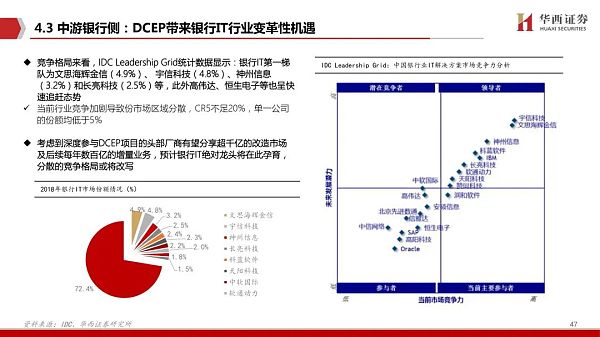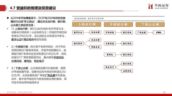3、从软件及改造角度看,受益最确定、空间最大的是银行IT软件厂商,其次为机具及加解密厂商。从商业运营角度看,未来基于场景运营的厂商有望受益。