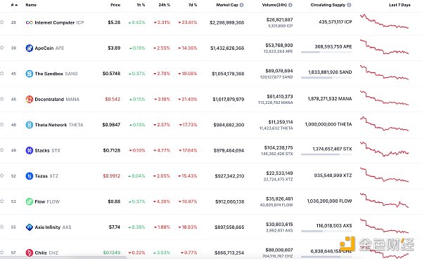 24小时NFT交易量、交易量前十项目 数据来源:Coinmarketcap