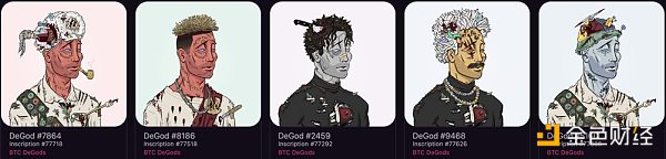 BTC DeGods是Solana上的蓝筹NFT在比特币网络上发行的项目,该NFT系列共有534枚,其中500枚将用于比特币铸造,34枚DeGods用于以DUST代币的形式进行拍卖/抽奖。Magic Eden数据显示,截至5月11日,BTC DeGods的地板价为0.969 BTC,总交易额近84.6 BTC。