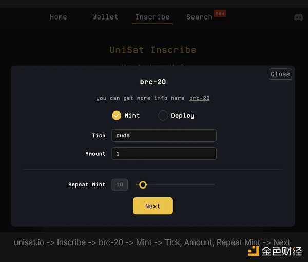 步骤1:打开unisat.io,进入Inscribe brc-20